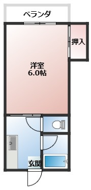 部屋の雰囲気も明るく一人暮らしでは十分な広さとなっています。